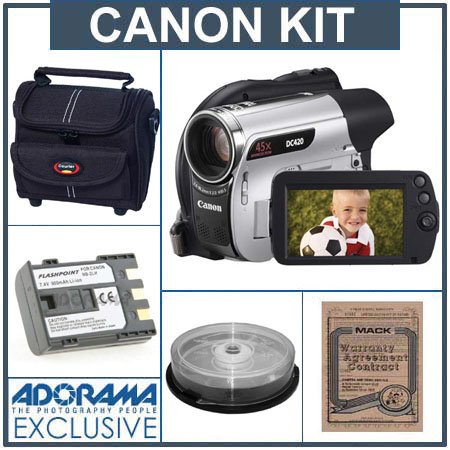 Canon DC420 DVD Camcorder Kit,with spare NB-2LH Type Lithium-ion Battery, Camcorder Case, Mini DVD-R,1.4 GB,10 Disc Pack, Mack Two Year exteneded video Warranty